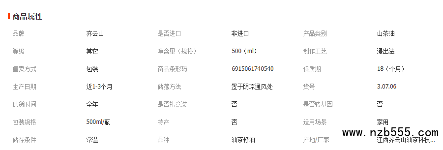 齊云山山茶油500ml 高