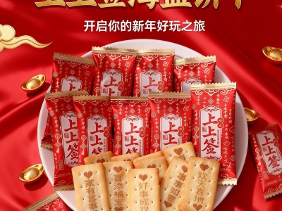 新年上上簽海鹽味餅干多款祝福語新年主題獨立包裝年貨招待零食